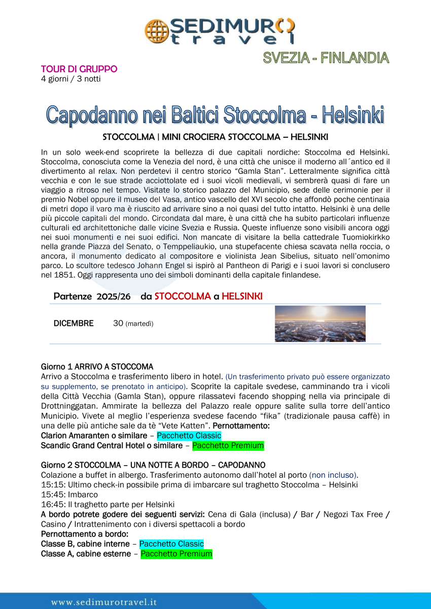 Capodanno nei Baltici Stoccolma – Helsinki 4 giorni