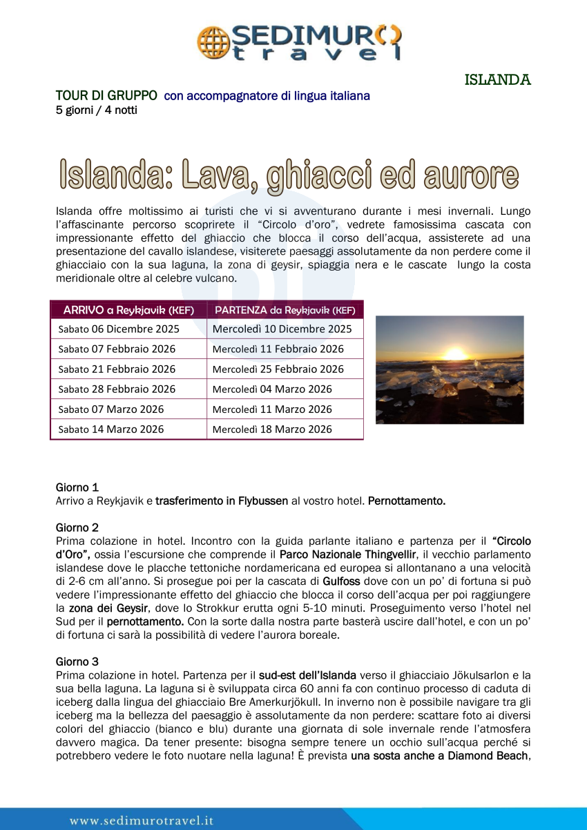 Islanda, lava ghiacci ed aurore da Reykjavik 5 giorni
